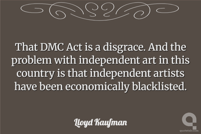 That DMC Act is a disgrace. And the problem with independent art in this country is that independent artists have been economically blacklisted.