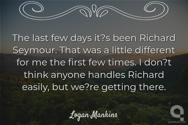 The last few days it?s been Richard Seymour. That was a little different for me the first few times. I don?t think anyone handles Richard easily, but we?re getting there.