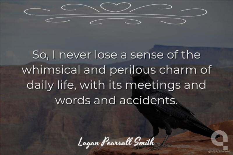 So, I never lose a sense of the whimsical and perilous charm of daily life, with its meetings and words and accidents.