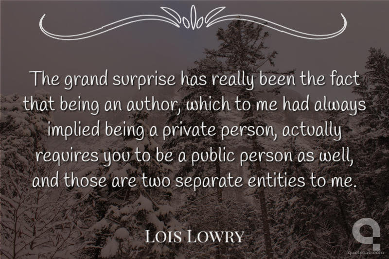 The grand surprise has really been the fact that being an author, which to me had always implied being a private person, actually requires you to be a public person as well, and those are two separate entities to me.
