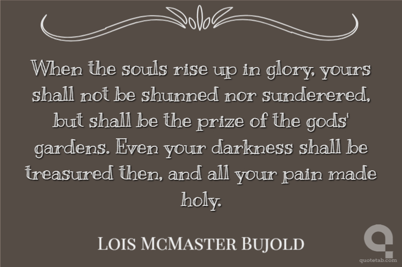 When the souls rise up in glory, yours shall not be shunned nor sunderered, but shall be the prize of the gods' gardens. Even your darkness shall be treasured then, and all your pain made holy.