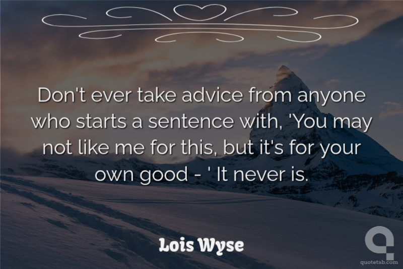 Don't ever take advice from anyone who starts a sentence with, 'You may not like me for this, but it's for your own good - ' It never is.
