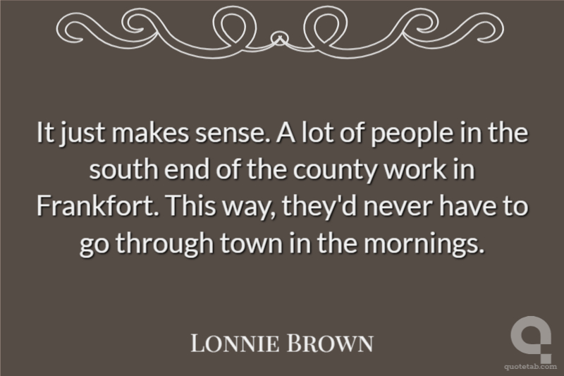 It just makes sense. A lot of people in the south end of the county work in Frankfort. This way, they'd never have to go through town in the mornings.