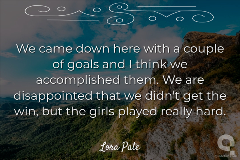 We came down here with a couple of goals and I think we accomplished them. We are disappointed that we didn't get the win, but the girls played really hard.