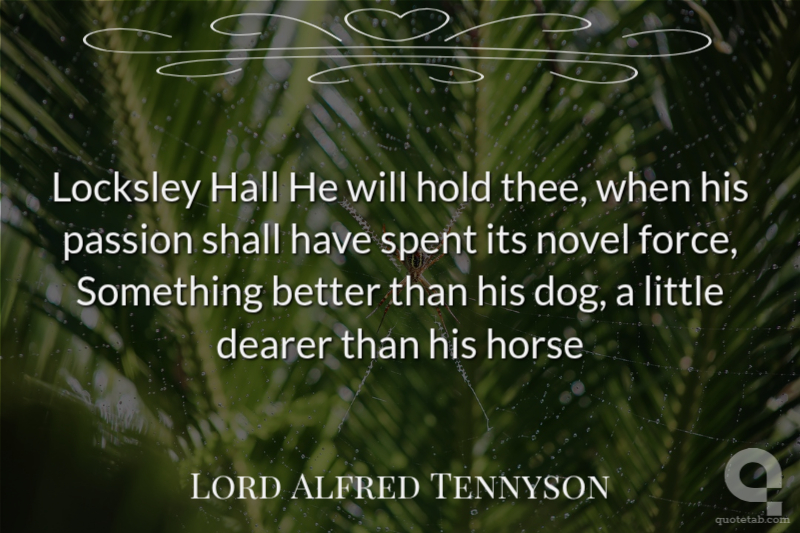 Locksley Hall He will hold thee, when his passion shall have spent its novel force, Something better than his dog, a little dearer than his horse