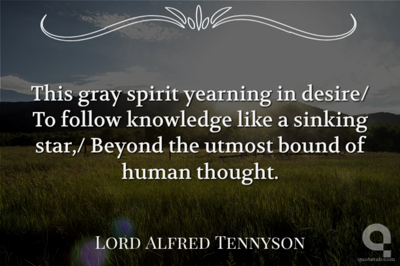 This gray spirit yearning in desire/ To follow knowledge like a sinking star,/ Beyond the utmost bound of human thought.