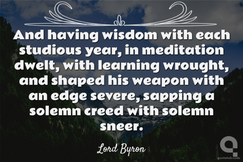 And having wisdom with each studious year, in meditation dwelt, with learning wrought, and shaped his weapon with an edge severe, sapping a solemn creed with solemn sneer.