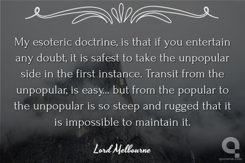 My esoteric doctrine, is that if you entertain any doubt, it is safest to take the unpopular side in the first instance. Transit from the unpopular, is easy... but from the popular to the unpopular is so steep and rugged that it is impossible to maintain it.