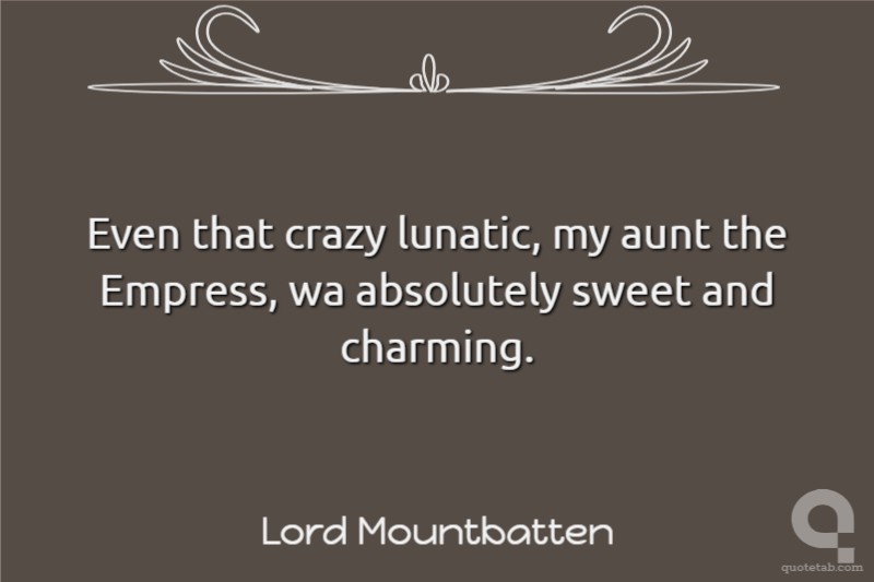 Even that crazy lunatic, my aunt the Empress, wa absolutely sweet and charming.