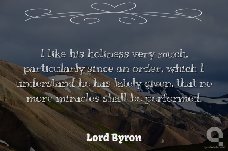 I like his holiness very much, particularly since an order, which I understand he has lately given, that no more miracles shall be performed.