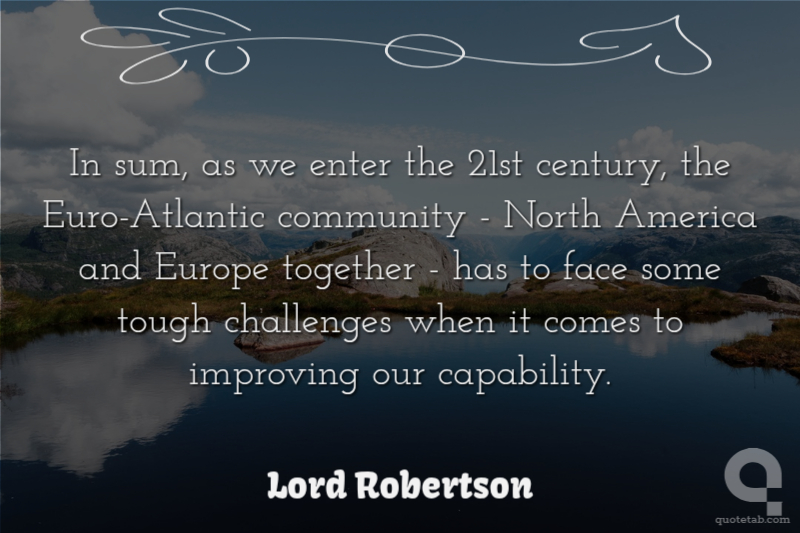 In sum, as we enter the 21st century, the Euro-Atlantic community - North America and Europe together - has to face some tough challenges when it comes to improving our capability.