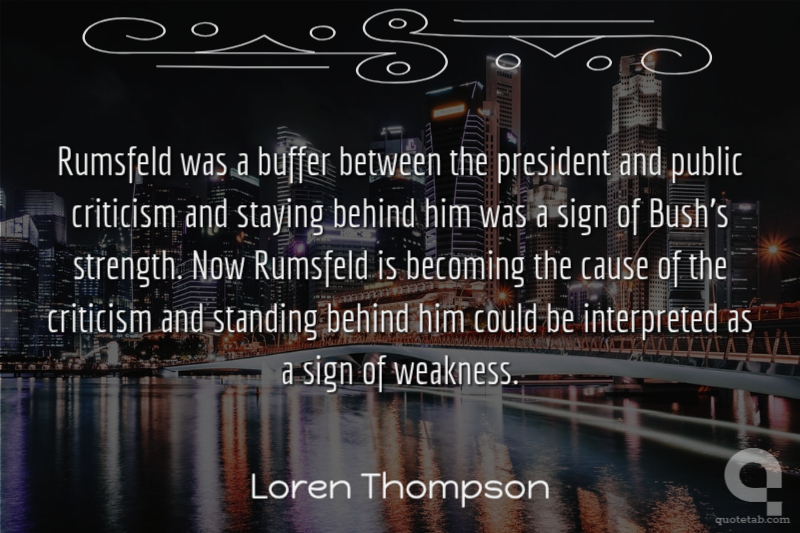 Rumsfeld was a buffer between the president and public criticism and staying behind him was a sign of Bush's strength. Now Rumsfeld is becoming the cause of the criticism and standing behind him could be interpreted as a sign of weakness.