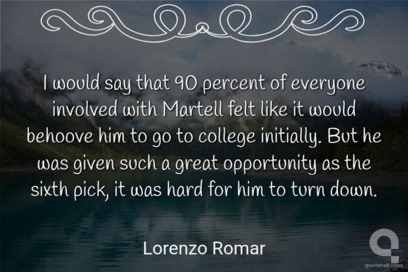 I would say that 90 percent of everyone involved with Martell felt like it would behoove him to go to college initially. But he was given such a great opportunity as the sixth pick, it was hard for him to turn down.