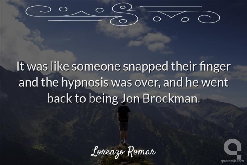 It was like someone snapped their finger and the hypnosis was over, and he went back to being Jon Brockman.