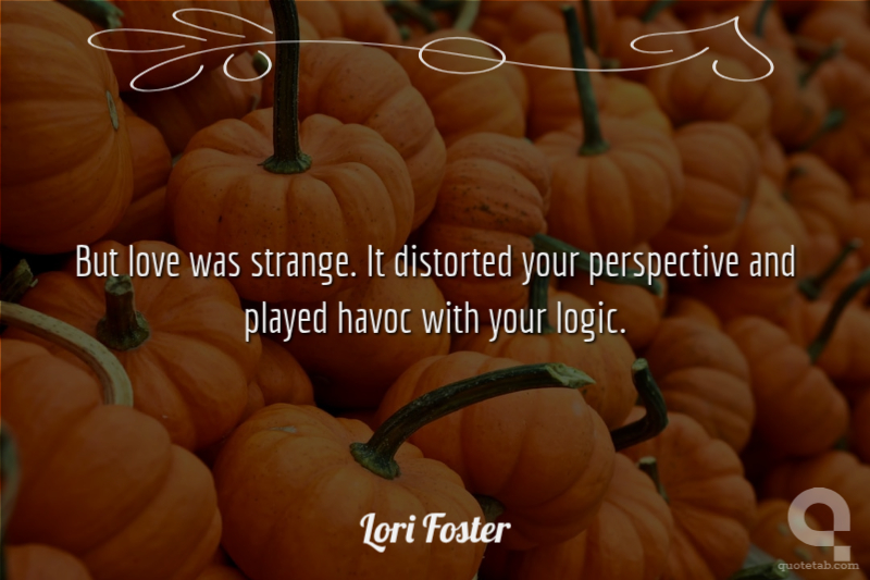 But love was strange. It distorted your perspective and played havoc with your logic.