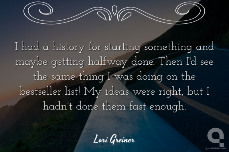 I had a history for starting something and maybe getting halfway done. Then I'd see the same thing I was doing on the bestseller list! My ideas were right, but I hadn't done them fast enough.