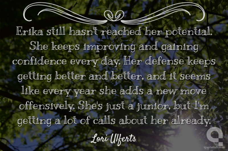 Erika still hasn't reached her potential. She keeps improving and gaining confidence every day. Her defense keeps getting better and better, and it seems like every year she adds a new move offensively. She's just a junior, but I'm getting a lot of calls about her already.
