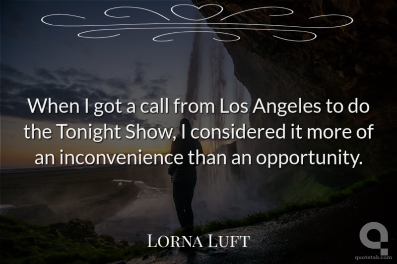 When I got a call from Los Angeles to do the Tonight Show, I considered it more of an inconvenience than an opportunity.