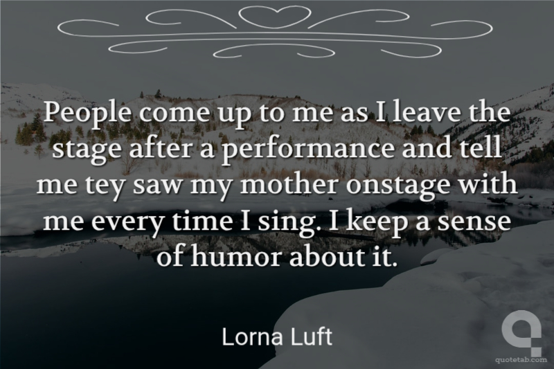 People come up to me as I leave the stage after a performance and tell me tey saw my mother onstage with me every time I sing. I keep a sense of humor about it.