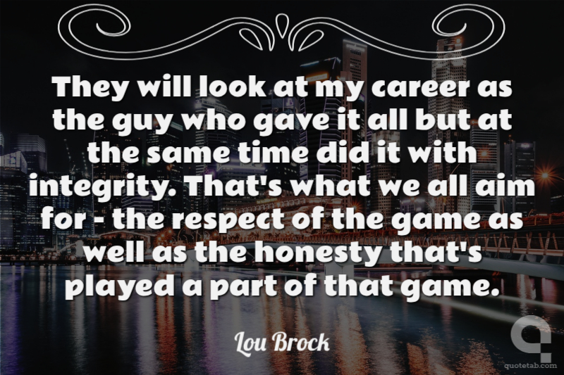 They will look at my career as the guy who gave it all but at the same time did it with integrity. That's what we all aim for - the respect of the game as well as the honesty that's played a part of that game.