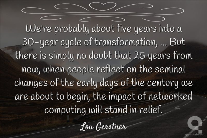 We're probably about five years into a 30-year cycle of transformation, ... But there is simply no doubt that 25 years from now, when people reflect on the seminal changes of the early days of the century we are about to begin, the impact of networked computing will stand in relief.