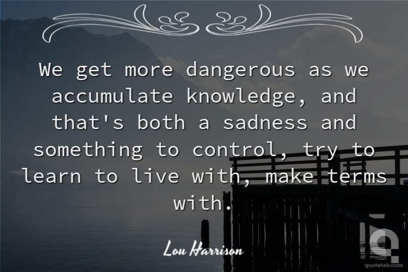 We get more dangerous as we accumulate knowledge, and that's both a sadness and something to control, try to learn to live with, make terms with.