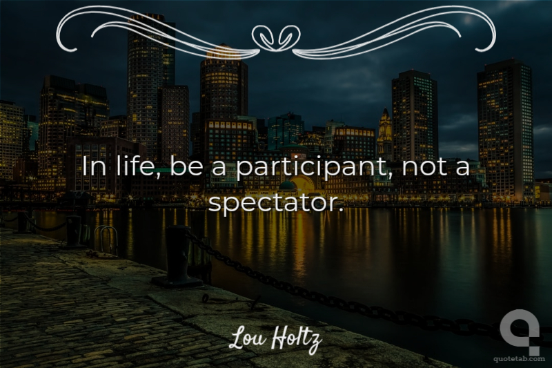 In life, be a participant, not a spectator.