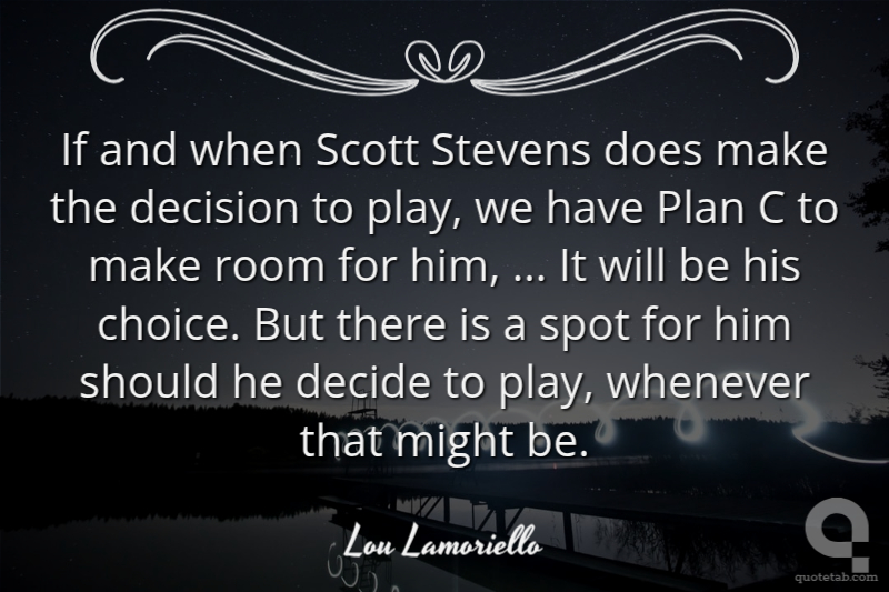 If and when Scott Stevens does make the decision to play, we have Plan C to make room for him, ... It will be his choice. But there is a spot for him should he decide to play, whenever that might be.