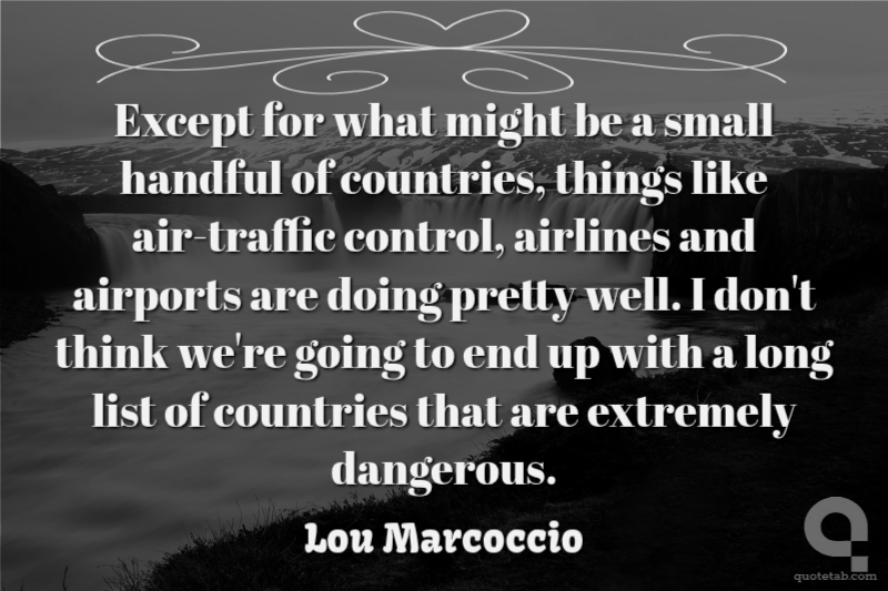 Except for what might be a small handful of countries, things like air-traffic control, airlines and airports are doing pretty well. I don't think we're going to end up with a long list of countries that are extremely dangerous.