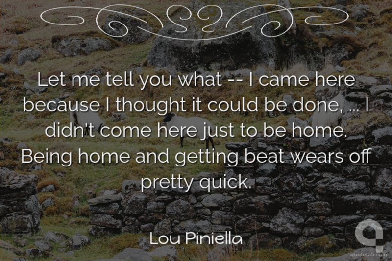 Let me tell you what -- I came here because I thought it could be done, ... I didn't come here just to be home. Being home and getting beat wears off pretty quick.