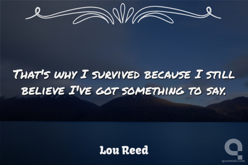 You can't ask me to explain the lyrics because I won't do it...I always believed that I have something important to say and I said it. That's why I survived because I still believe I've got something to say. ... I don't like overdubs, never liked them. ... The music business doesn't interest me anymore...Don't the people you're around shape the music, is that what you're saying? Everything does. ... I'm not joking around when I've said occasionally, trying to learn how to play a D chord properly has been a very big thing for me.