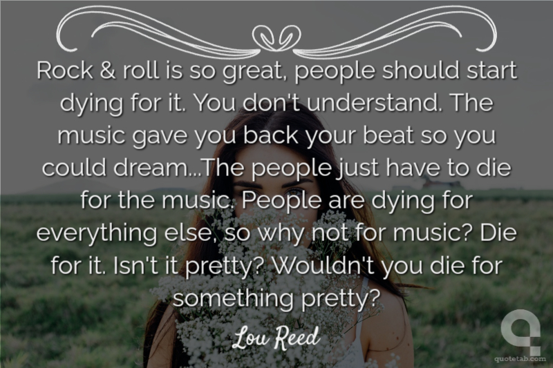 Rock & roll is so great, people should start dying for it. You don't understand. The music gave you back your beat so you could dream...The people just have to die for the music. People are dying for everything else, so why not for music? Die for it. Isn't it pretty? Wouldn't you die for something pretty?