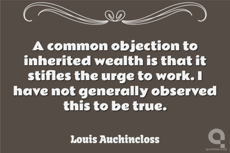A common objection to inherited wealth is that it stifles the urge to work. I have not generally observed this to be true.