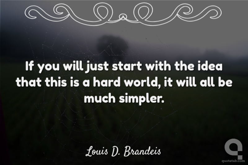 If you will just start with the idea that this is a hard world, it will all be much simpler.