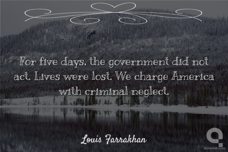 For five days, the government did not act. Lives were lost. We charge America with criminal neglect.