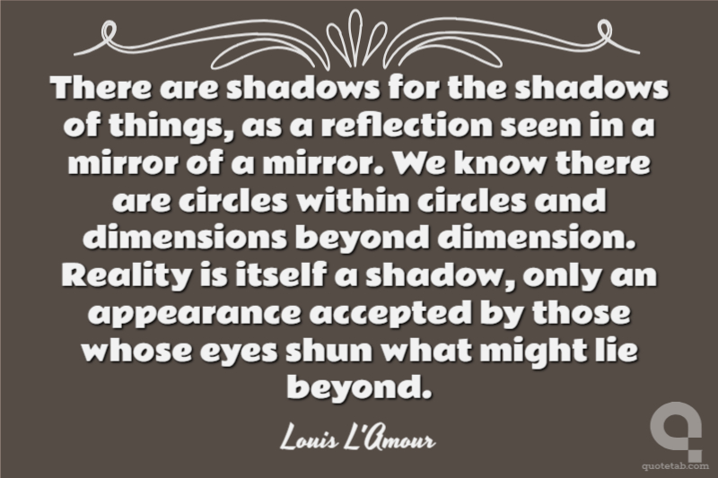 There are shadows for the shadows of things, as a reflection seen in a mirror of a mirror. We know there are circles within circles and dimensions beyond dimension. Reality is itself a shadow, only an appearance accepted by those whose eyes shun what might lie beyond.