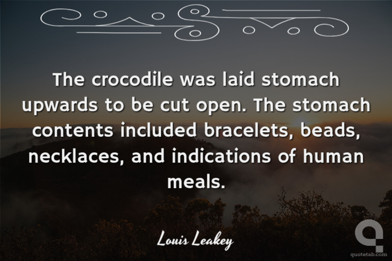 The crocodile was laid stomach upwards to be cut open. The stomach contents included bracelets, beads, necklaces, and indications of human meals.