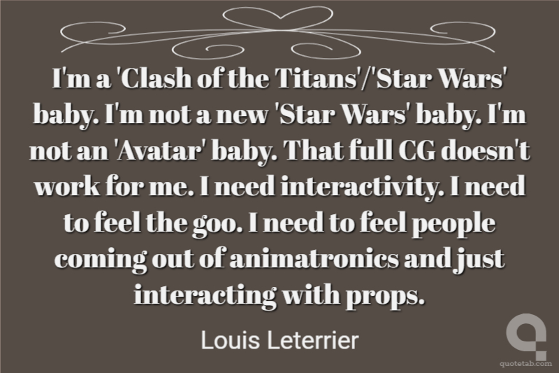 I'm a 'Clash of the Titans'/'Star Wars' baby. I'm not a new 'Star Wars' baby. I'm not an 'Avatar' baby. That full CG doesn't work for me. I need interactivity. I need to feel the goo. I need to feel people coming out of animatronics and just interacting with props.
