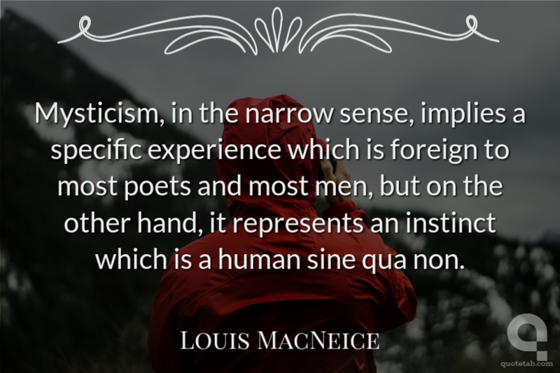 Mysticism, in the narrow sense, implies a specific experience which is foreign to most poets and most men, but on the other hand, it represents an instinct which is a human sine qua non.