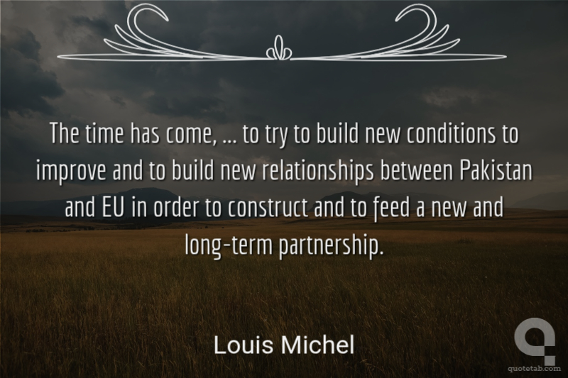 The time has come, ... to try to build new conditions to improve and to build new relationships between Pakistan and EU in order to construct and to feed a new and long-term partnership.