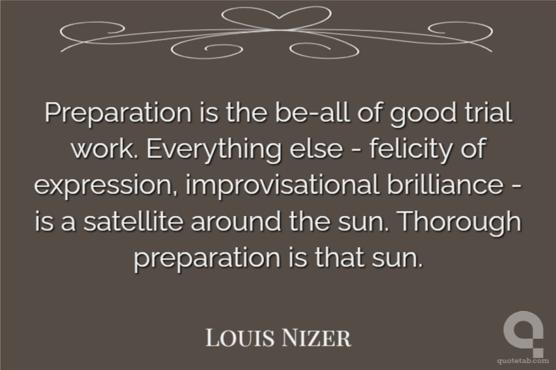 Preparation is the be-all of good trial work. Everything else-felicity of expression, improvisational brilliance-is a satellite around the sun. Thorough preparation is that sun.