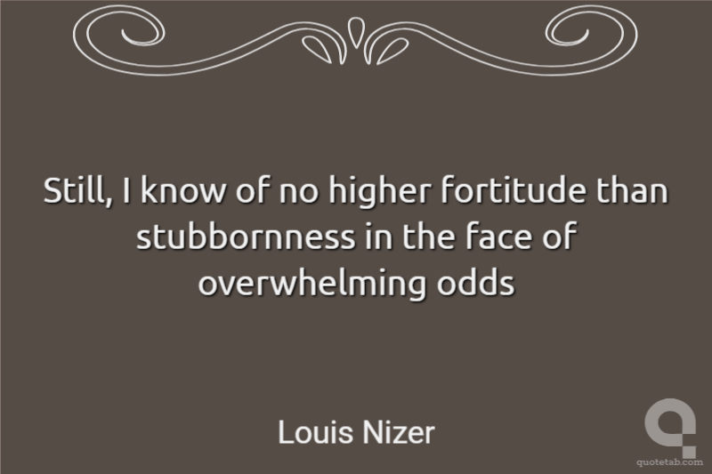 Still, I know of no higher fortitude than stubbornness in the face of overwhelming odds