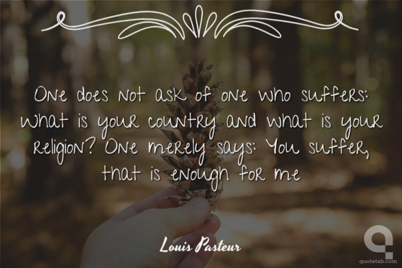 One does not ask of one who suffers: What is your country and what is your religion? One merely says: You suffer, that is enough for me