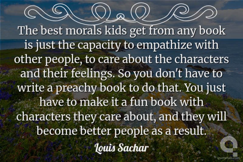 The best morals kids get from any book is just the capacity to empathize with other people, to care about the characters and their feelings. So you don't have to write a preachy book to do that. You just have to make it a fun book with characters they care about, and they will become better people as a result.