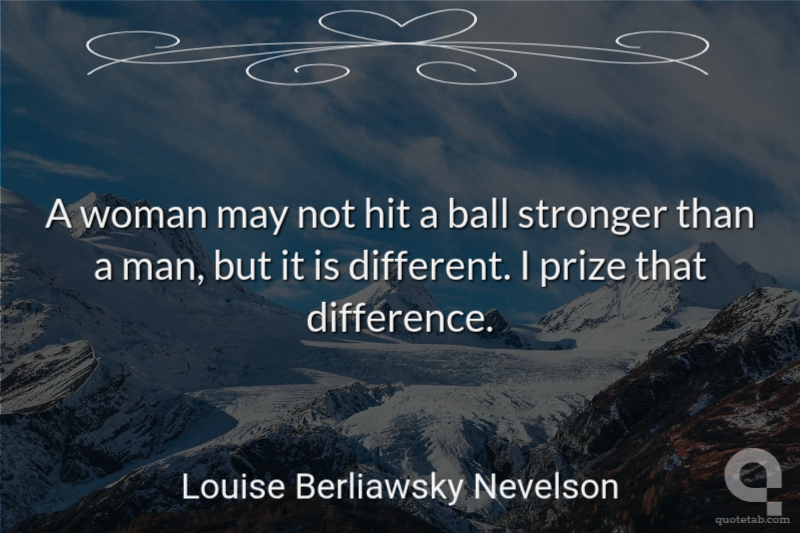 A woman may not hit a ball stronger than a man, but it is different. I prize that difference.