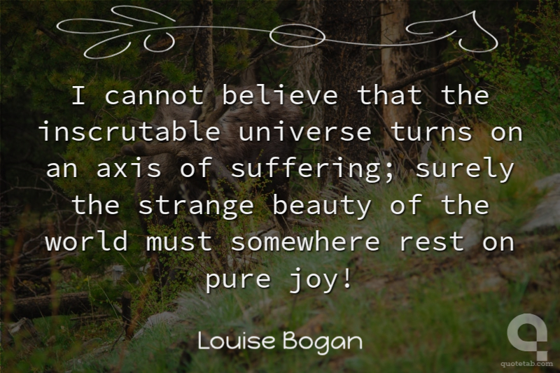 I cannot believe that the inscrutable universe turns on an axis of suffering; surely the strange beauty of the world must somewhere rest on pure joy!