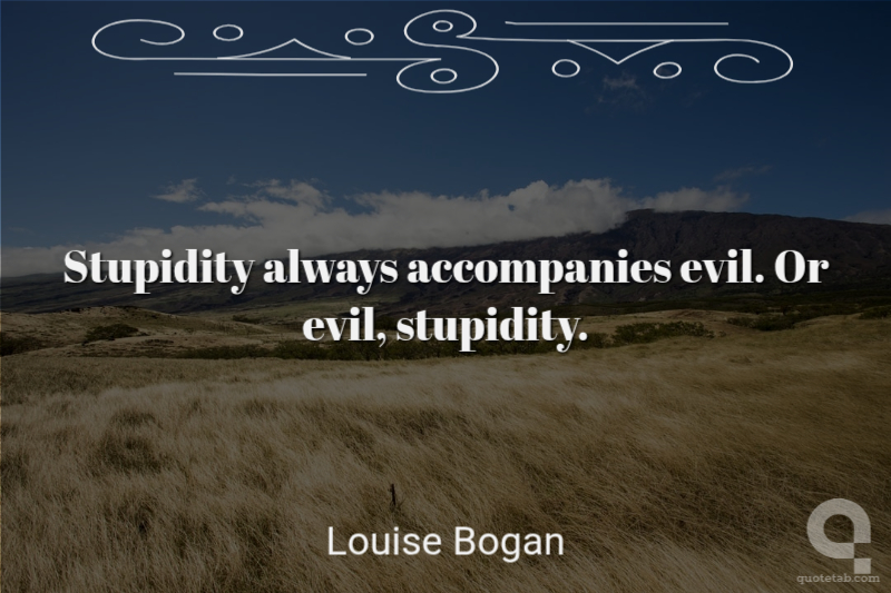 Stupidity always accompanies evil. Or evil, stupidity.