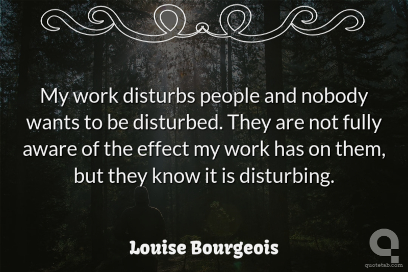 My work disturbs people and nobody wants to be disturbed. They are not fully aware of the effect my work has on them, but they know it is disturbing.
