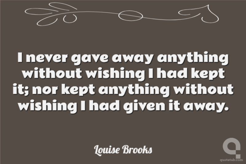 I never gave away anything without wishing I had kept it; nor kept anything without wishing I had given it away.