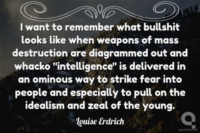 I want to remember what bullshit looks like when weapons of mass destruction are diagrammed out and whacko "intelligence" is delivered in an ominous way to strike fear into people and especially to pull on the idealism and zeal of the young.